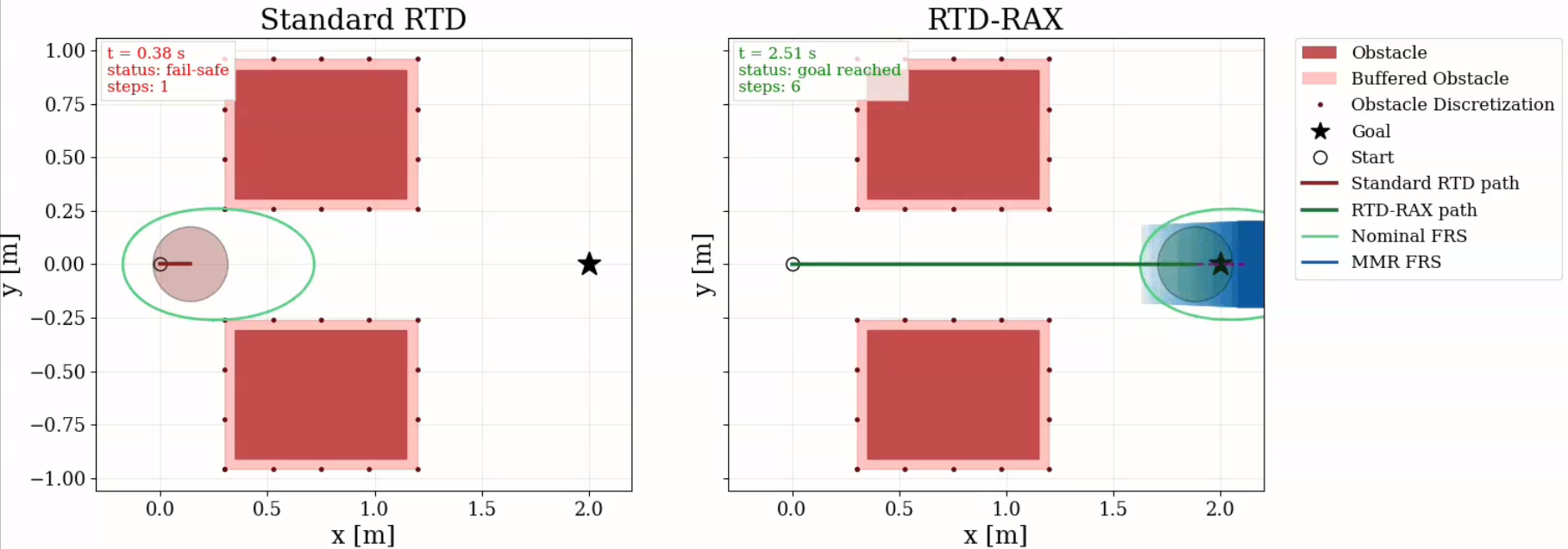 noerror FRS to find candidate trajectories.This produces trajectories that are both less conservative and formally verified safe.